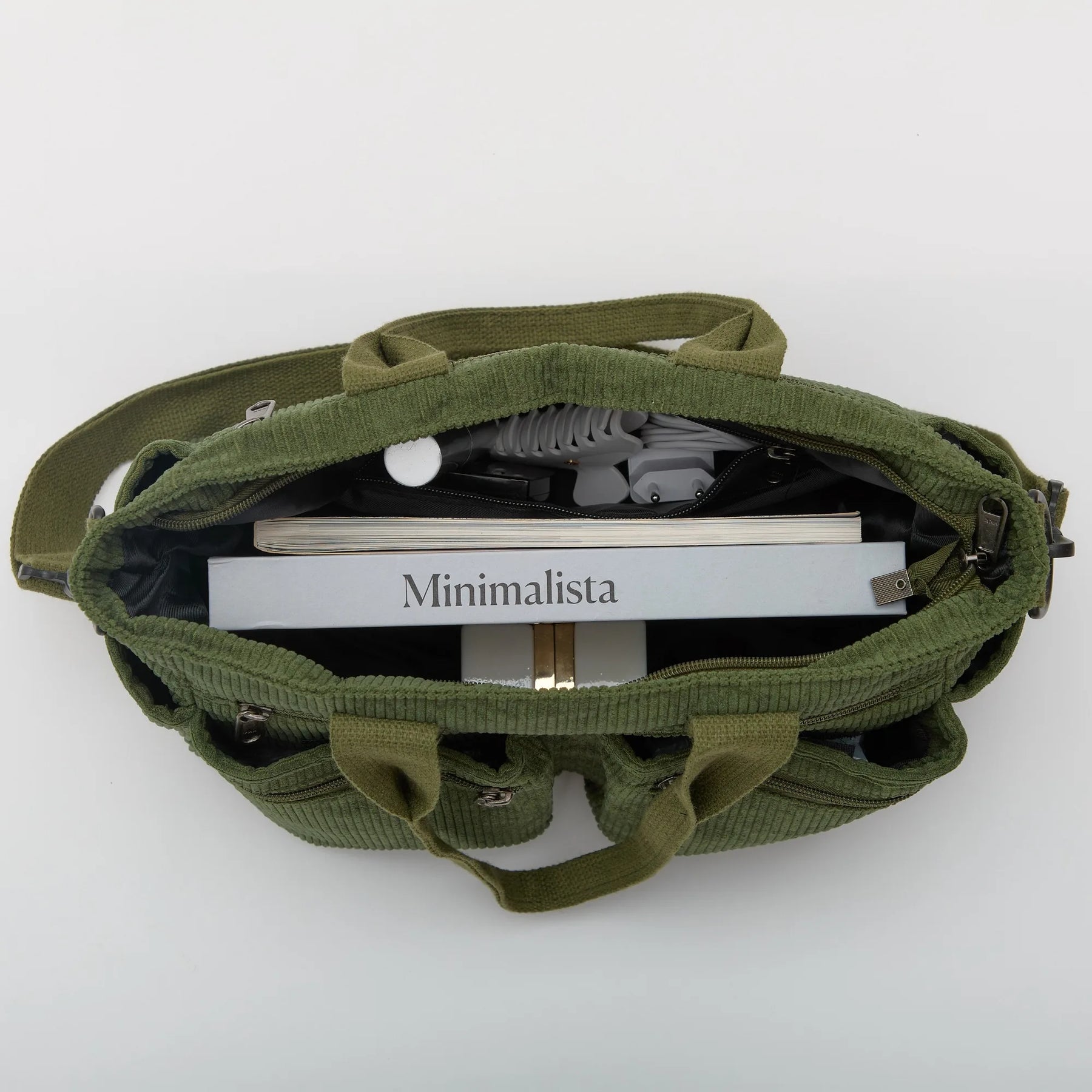 Discover the Kanna bag, the perfect accessory for everyday use. Made from premium corduroy, it offers a soft and lightweight texture. The spacious interior, lined with soft recycled polyester, easily holds all your essentials: iPad, wallet, beauty products, umbrella, and more. Featuring an adjustable strap, a large main zippered compartment, and internal pockets for your phone, keys, and cards, it combines functionality with style. Three front zippered pockets add extra storage solutions.