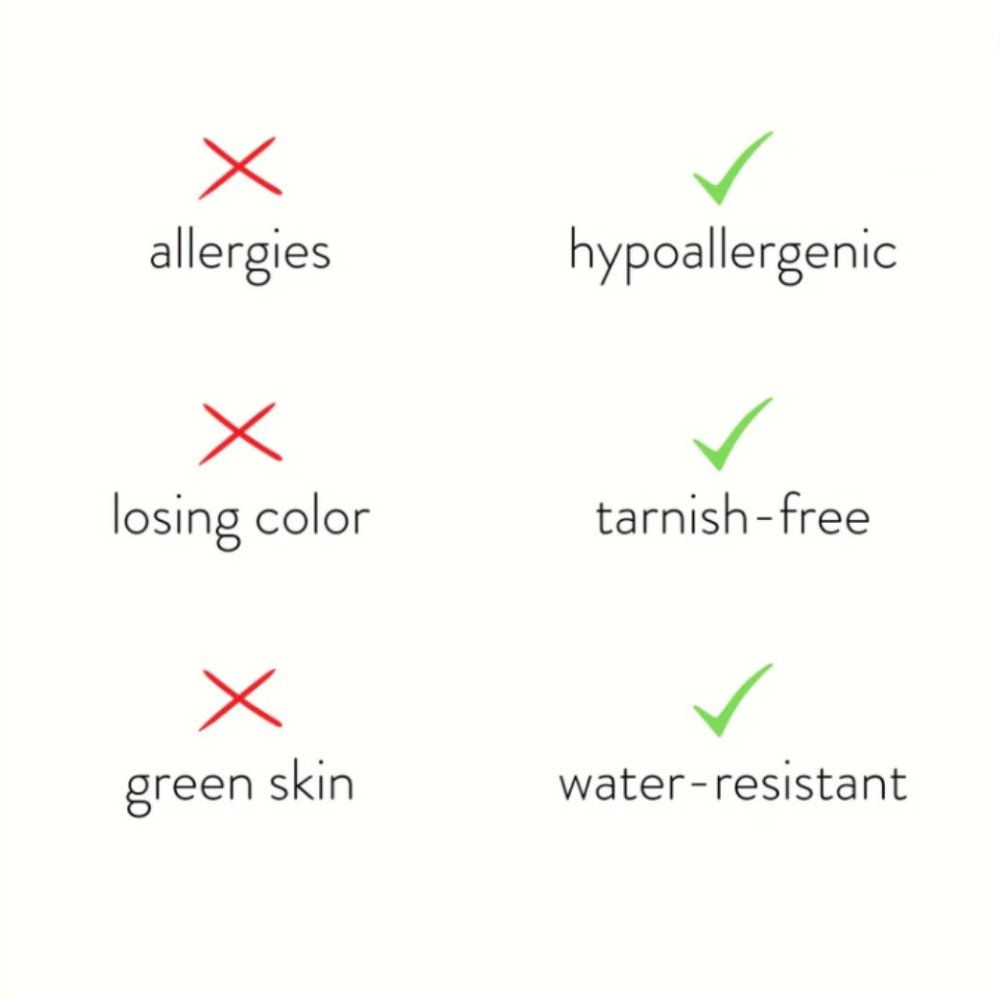 Crafted from durable stainless steel, our jewelry resists discoloration and tarnishing, so you can wear it worry-free every day. Hypoallergenic, lead-free, and nickel-free, it’s designed for sensitive skin and long-lasting comfort.