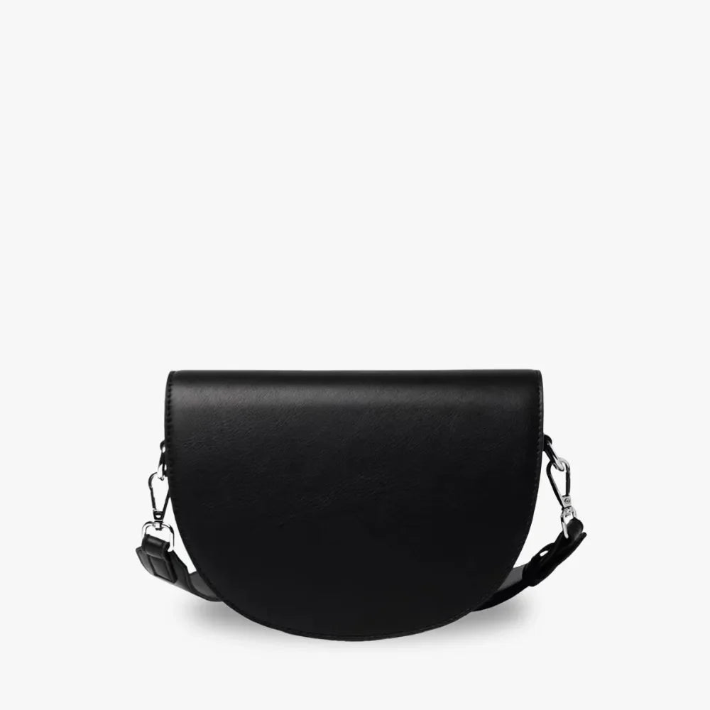 Discover “Virelle”, a simple yet elegant crossbody bag featuring a timeless half-moon silhouette. Crafted from our Vegan Leather, it opens to a zippered main compartment spacious enough to hold your daily essentials. The adjustable strap ensures a perfect fit for your style and comfort. Dress it up with a coat or keep it casual with jeans — the choice is yours. Perfect for any occasion.